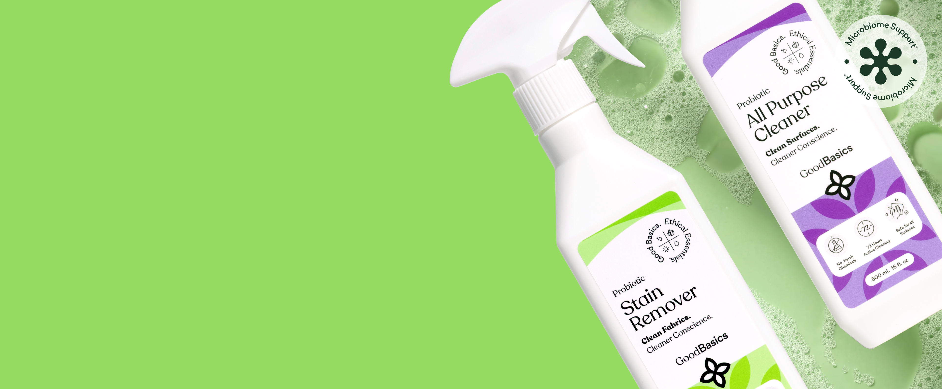 The air you breathe, the surfaces you touch, the fabrics against your skin - all influence your family's health. GoodBasics provides probiotic-powered home care that supports your home's microbiome and healthier living.